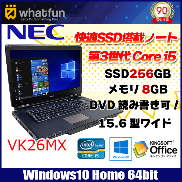 【中古パソコン】NEC VK26M/X 中古 ノートパソコン Office Win10 第3世代 大画面 [corei5 3320M 2.6GHz 8GB SSD256GB マルチ 無線 15.6型 ] :アウトレット