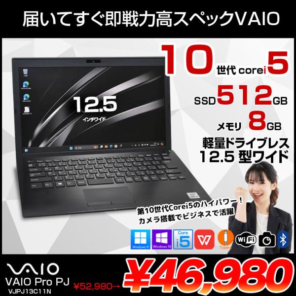 【中古パソコン】SONY VAIO ProPJ13 VJPJ13C11N 中古 ノートOffice Win11 or Win10 第10世代 フルHD[Core i5 1035G1 メモリ8GB SSD512GB カメラ 12.5]:良品