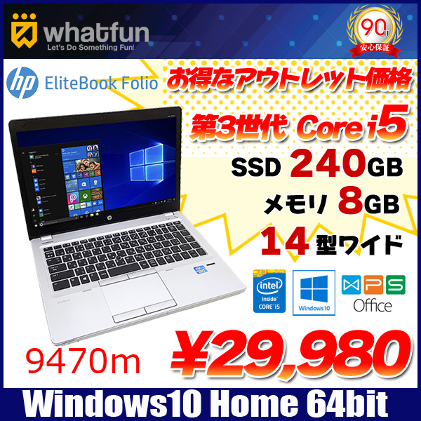 【中古パソコン】HP folio 9470m 中古 ノートパソコン Office Win10 カメラ 指紋認証 [core i5 3337M 1.8GHz 8GB SSD240GB 14型 USB3.0 ] :アウトレット