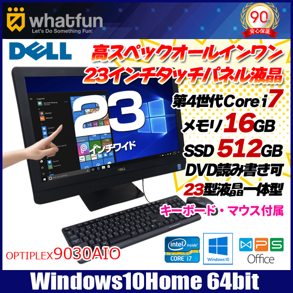 【中古パソコン】DELL OPTIPLEX 9030 AIO 中古 23型 タッチパネル 一体型デスクトップ Wind10 無線 カメラ [corei7 4790S 3.2GHz メモリ16G SSD512GB マルチ BT]良品