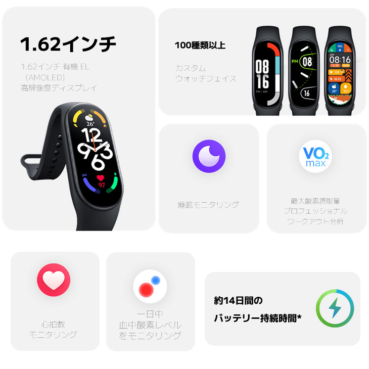 【中古良品】【ゆうパケット送料無料】Xiomi シャオミ スマートバンド Xiaomi SmartBand 7 1.62インチ カスタムウォッチフェイス 血中 酸素 心拍数 睡眠 モニタリング エクササイズ ヘルス 防水 ブラック