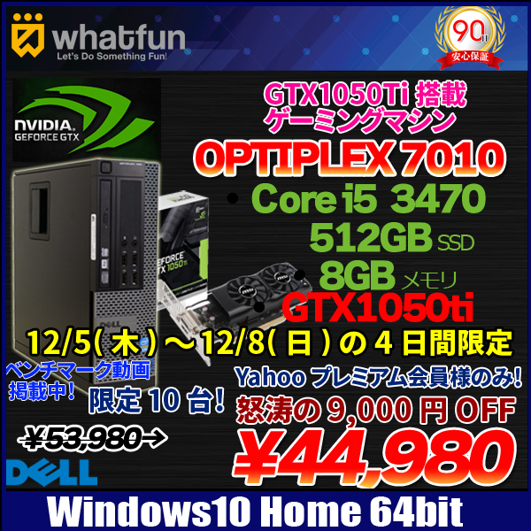 【中古パソコン】【12/5〜8まで特価】DELL 7010 ゲーミングPC GTX1050Ti搭載 新品高速SSD[Corei5 3470 3.2GHz 8G SSD512GB マルチ]キー&マウス:アウトレット
