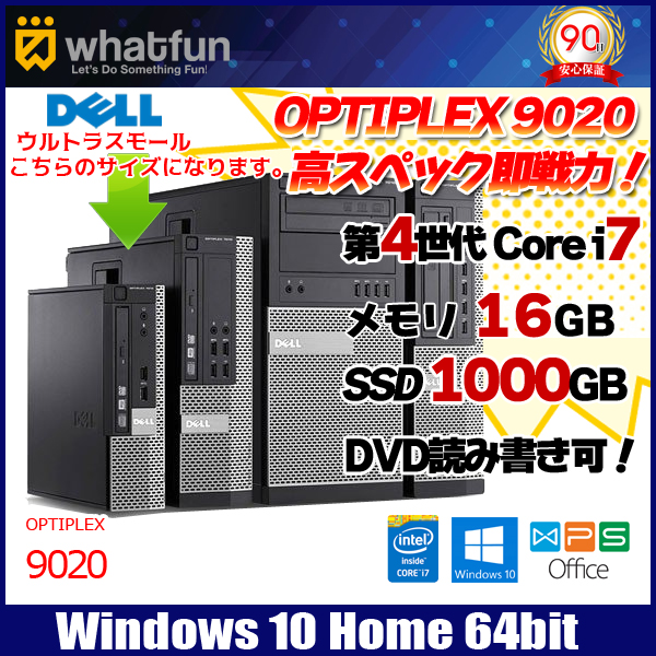 【中古パソコン】DELL OPTIPLEX 9020 USFF 中古ウルトラスモールデスク Win10 第四世代 大容量SSD [Corei7 4790S 3.2GHz メモリ16GB SSD1TB マルチ]