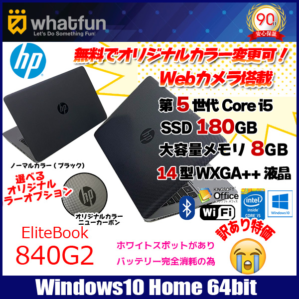 【中古パソコン】HP EliteBook 840G2 中古 ノートパソコン カラー変更可! USキー カメラ 第五世代 [Core i5 5300U 2.3GHz 8GB SSD180GB 14型]:アウトレット訳あり