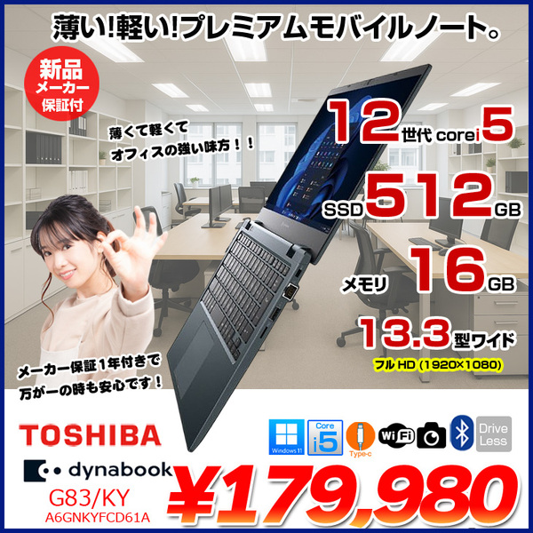 【新品パソコン】★東芝 Dynabook G83/KY A6GNKYFCH6 Win11 第12世代 フルHD [Core i5 1240P メモリ16GB SSD512GB カメラ 13.3型]:新品