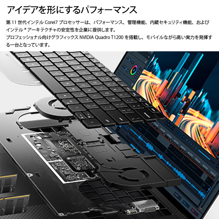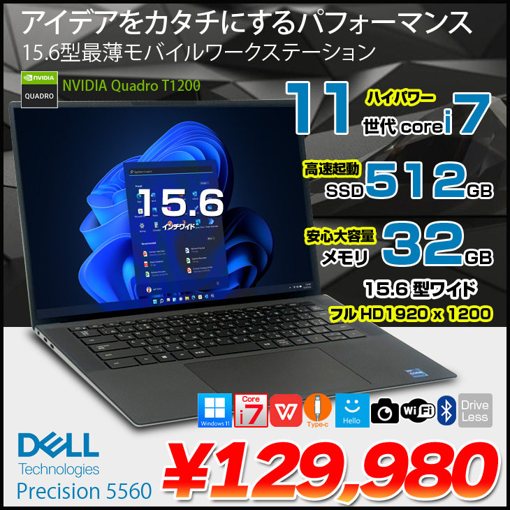 【中古パソコン スタイリッシュなモバイルワークステーション】DELL PRECISION 5560 中古 ノート Office Win11 Quadro T1200搭載 [Corei7 11850H 32GB SSD512GB カメラ BT 15.6型]:良品
