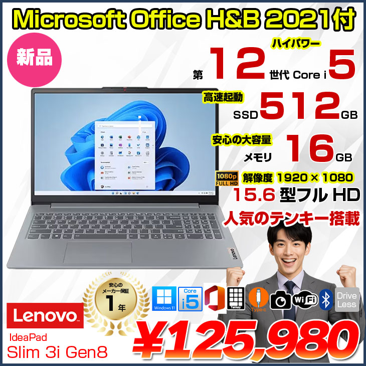 ★【新品 OfficeH&B 2021付 Lenovo IdeaPad Slim 3i Gen 8 83ER00ETJP Win11Home [Corei5 12450H 16GB SSD512GB 無線 指紋 テンキー カメラ 15.6型] :新品