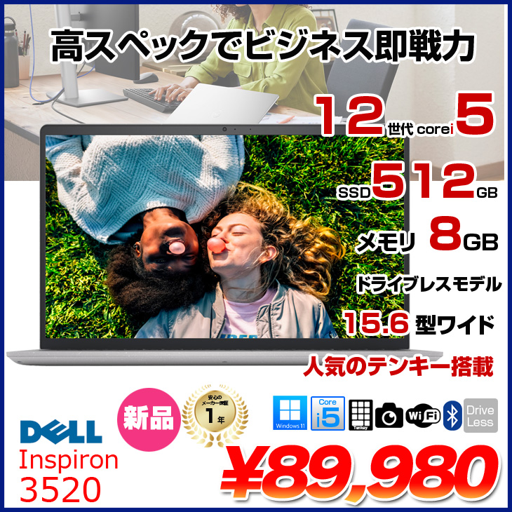 【新品パソコン】DELL Inspiron 3520 NBIN001-002N1 ノート Win11 第12世代 フルHD[Corei5 1235U メモリ8GB SSD512GB カメラ テンキー 15.6型]:新品