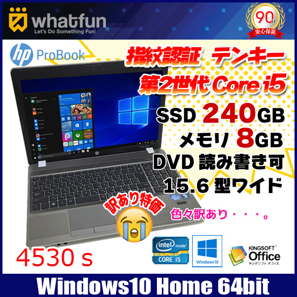 【中古パソコン】HP 4530s 中古 ノートパソコン Office Win10 Home 64bit  テンキー [core i5 2410M 2.3GHz 8GB SSD240GB DVDマルチ15.6型 A4 ] :訳あり