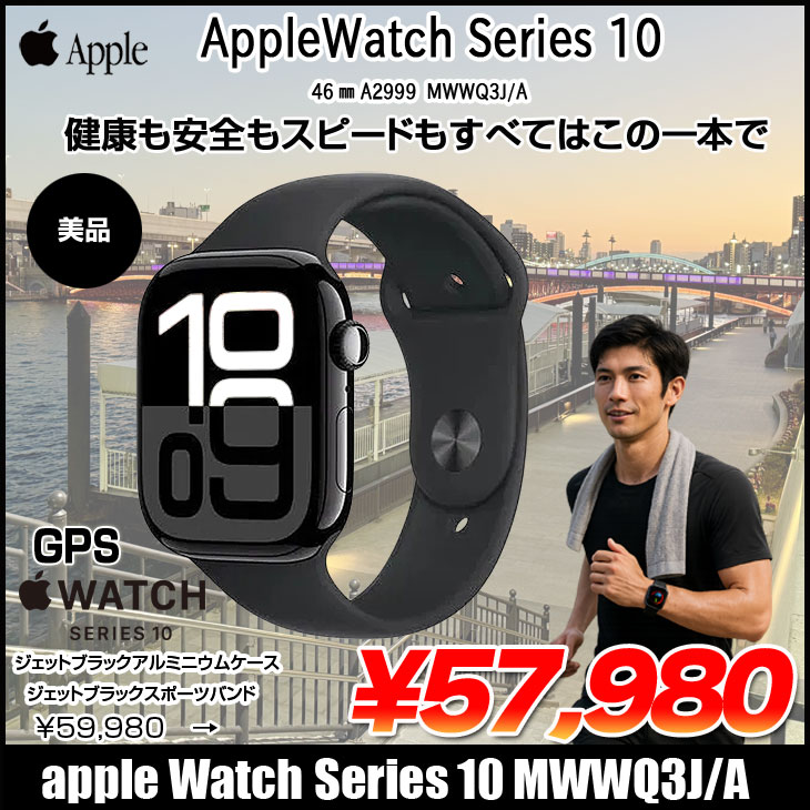 【中古】Apple Watch 10 (GPSモデル)46mm MWWQ3J/A A2999 [ジェットブラックアルミニウムケース スポーツバンド46mm(M/L)] アップルウォッチ10 :美品