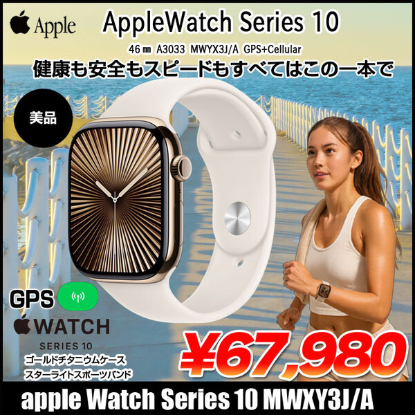 【中古 アップルウォッチ】Apple Watch 10(GPSモデル)46mm MWXY3J/A A3003 [ゴールドチタニウムケース スターライトスポーツバンド] :美品