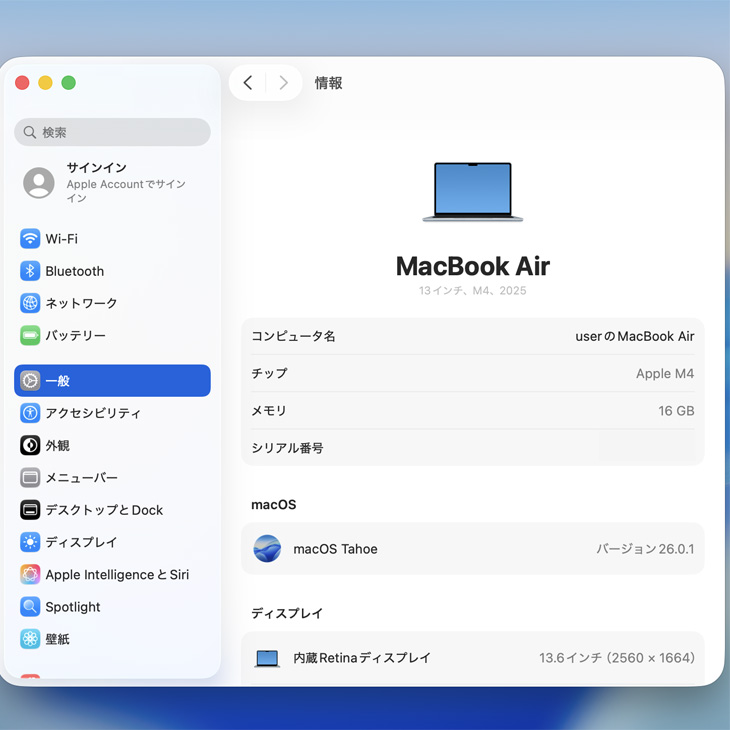 Apple MacBook Air 13.6inch MC6U4J/A A3240 2025 TouchID [Apple M4 10コア メモリ16GB SSD512GB 無線 BT カメラ 13.6型 Sky Blue 純箱 ] :美品