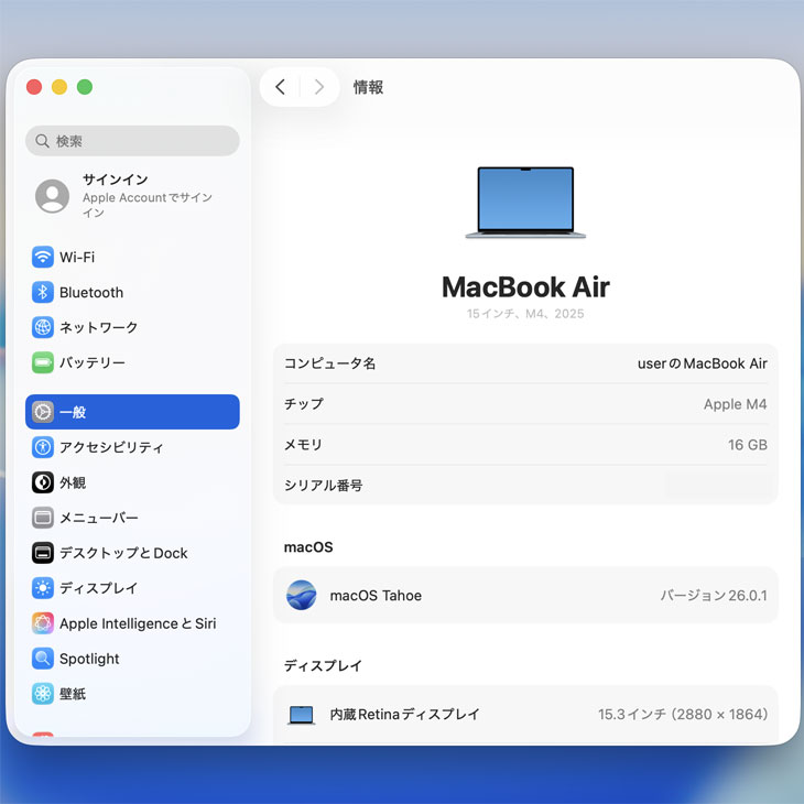 Apple MacBook Air 13.6inch MC7A4J/A A3241 2025 TouchID [Apple M4 10コア メモリ16GB SSD256GB 無線 BT カメラ 15.3型 Sky Blue 純箱 ] :美品