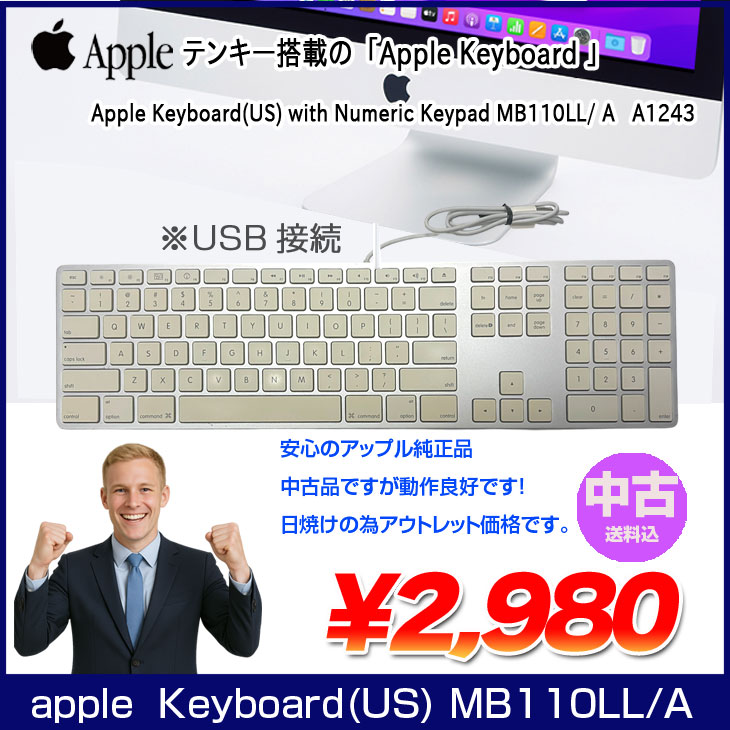 【中古】Apple アップル 純正 Apple Keyboard with Numeric Keypad アップルキーボード MB110LL/A US配列キーボード A1243 USB接続 送料込み アウトレット