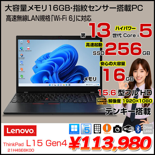 【■新品ノートパソコン】Lenovo ThinkPad L15 Gen4 Win11 テンキー カメラ Core i5-1335U メモリ16GB SSD256GB