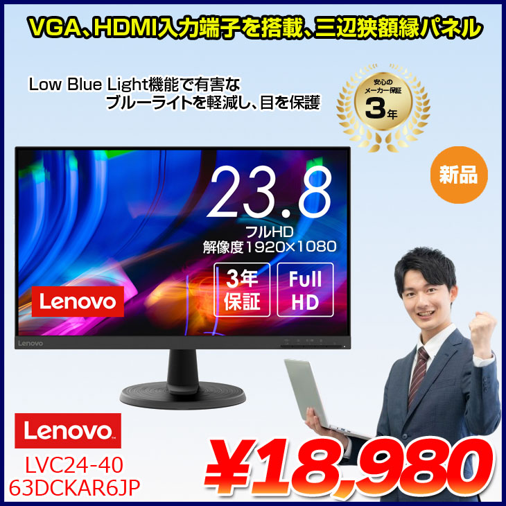 【新品】Lenovo LVC24-40 63DCKAR6JP 液晶モニター23.8インチ フルHD 1920×1080 HDMI miniD-Sub