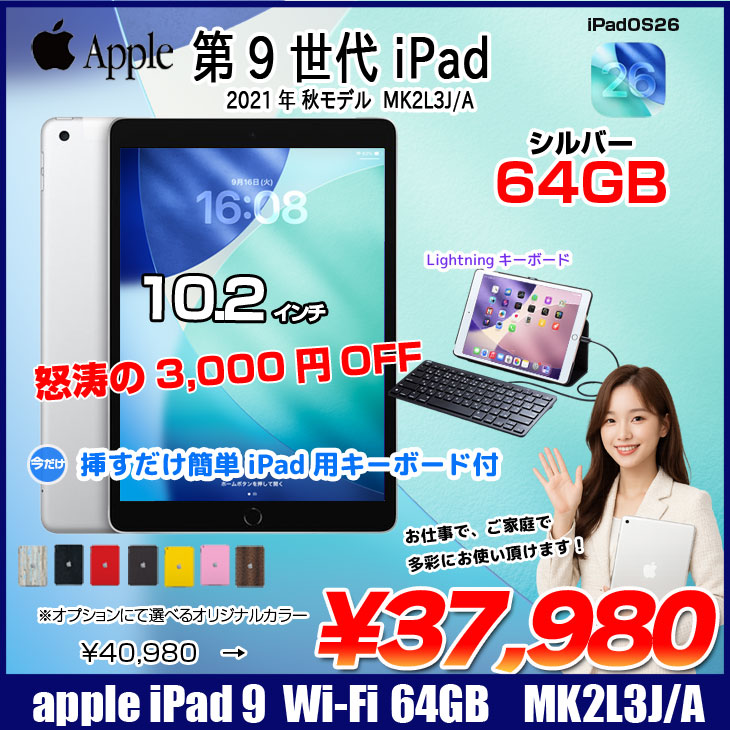 【中古 iPad 今だけLightningキーボード】Apple iPad9 第9 MK2L3J/A Wi-Fi 2021 64GB A2602 [A13 Bionic 64GB Retina 10.2 iPadOS 26 シルバー ] :アウトレット