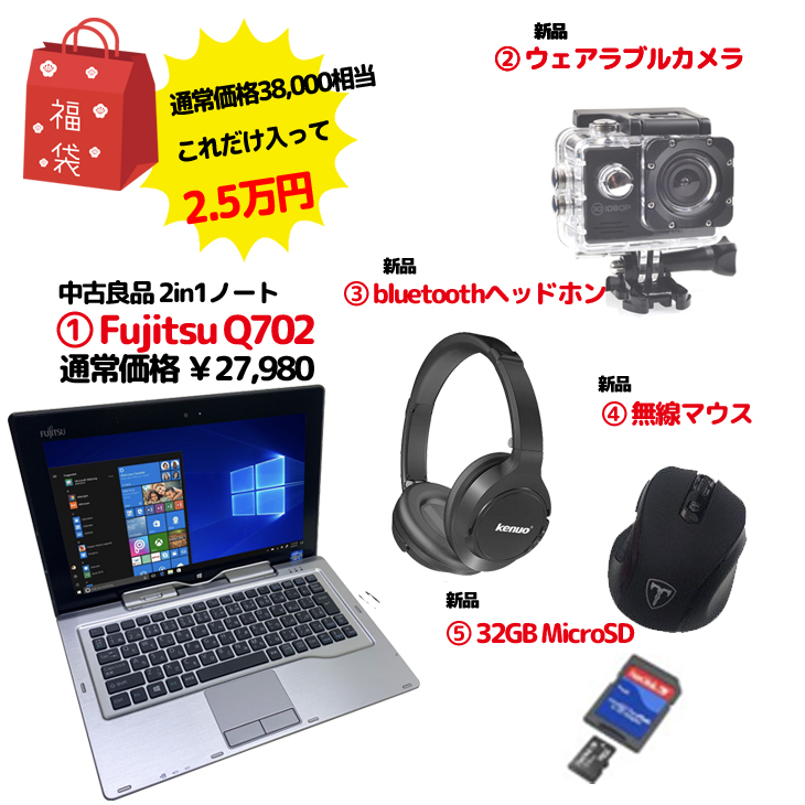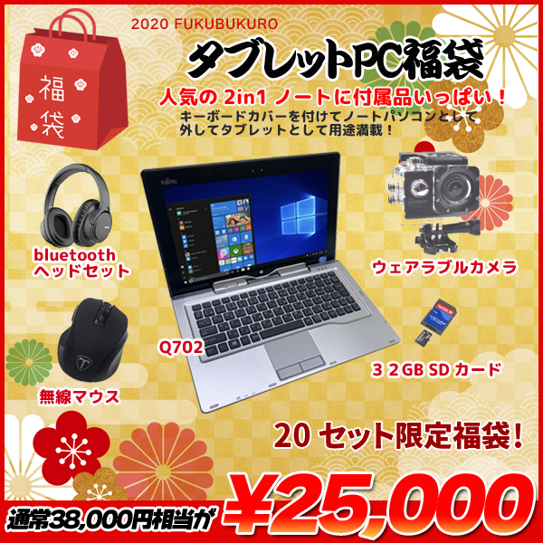 【中古パソコン 2020年限定福袋 】 タブレットPC福袋 Q702 [corei5 3427U 1.8GHz 4GB SSD128GB ドックキー ペン ウェアラブル マウス 32GBSD ヘッドセット 11.6型 ] :良品