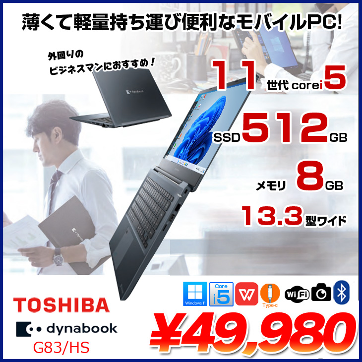 東芝 DynaBook G83/HS Win11 第11世代 フルHD [Core i5 1135G7 メモリ8GB SSD512GB カメラ 13.3]:良品