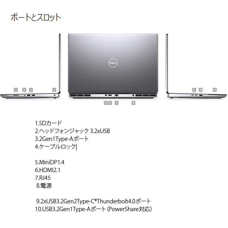 DELL 17.3型 PRECISION 7760 中古 ノート Office Win11 Quadro RTX A3000搭載 [Corei7 11850H 32GB SSD512GB カメラ USキー テンキー 無線 BT]:良品