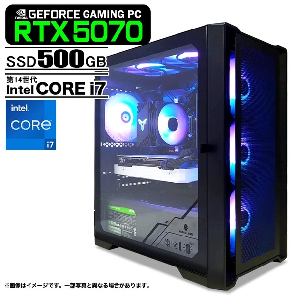 ゲーミングPC ブラック メッシュ GeForce RTX5070 第14世代 Intel Corei7 14700F Windows11 SSD500GB メモリ16GB ゲーミングパソコン eスポーツ PASOUL 煌