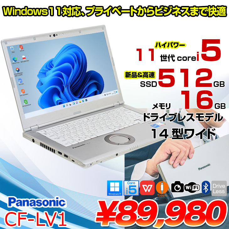 【中古パソコン】Panasonic CF-LV1 レッツノート Office Win11 第11世代[Core i5 1145G7 メモリ16GB SSD512GB 無線 カメラ Type-C 14型]:良品