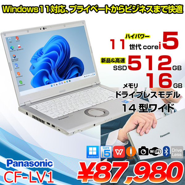 【中古パソコン】Panasonic CF-LV1 レッツノート Office Win11 第11世代[Core i5 1145G7 メモリ16GB SSD512GB 無線 カメラ Type-C 14型]:アウトレット