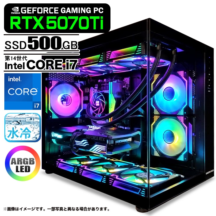 ゲーミングPC デスクトップ 海景房 GMQ360 ブラック GeForce RTX5070Ti 第14世代 Intel Corei7 14700F Win11 SSD500GB メモリ16GB CPU水冷ファン