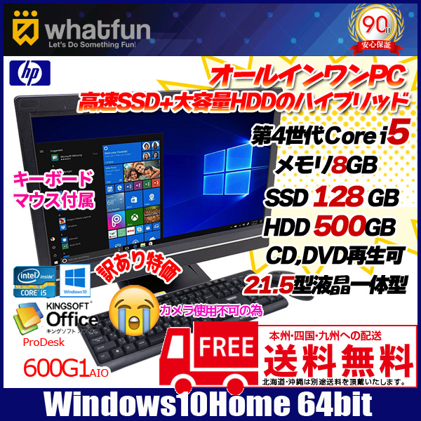 【中古パソコン】HP ProDesk 600 AIO 中古 21.5型 ハイブリッド 一体型デスクトップ Win10 [corei5 4570S 2.9GHz 8G SSD128GB+HDD500GB ROM]訳あり