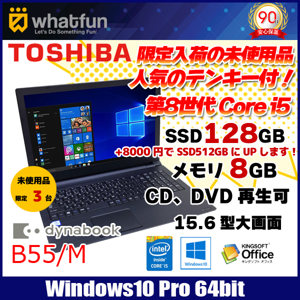 東芝 B55/M 未使用ノートパソコン Office Win10 Pro 第八世代 カメラ テンキー [core i5 8250U 1.6GHz 8GB SSD128GB ROM 15.6型 ] :未使用品