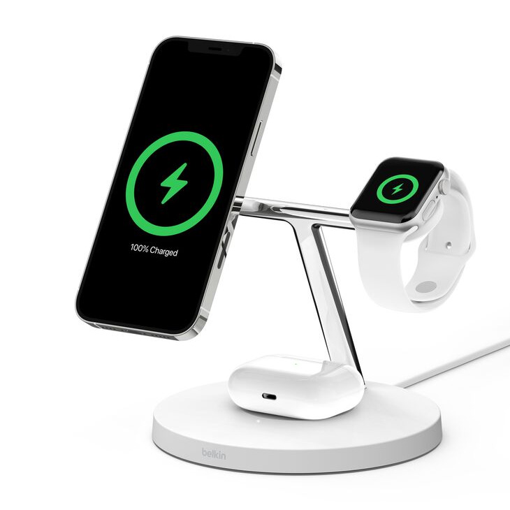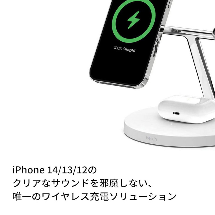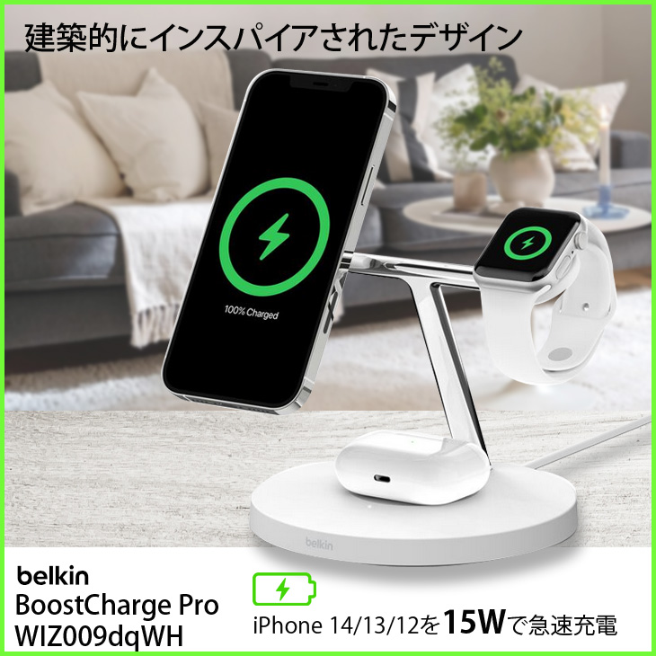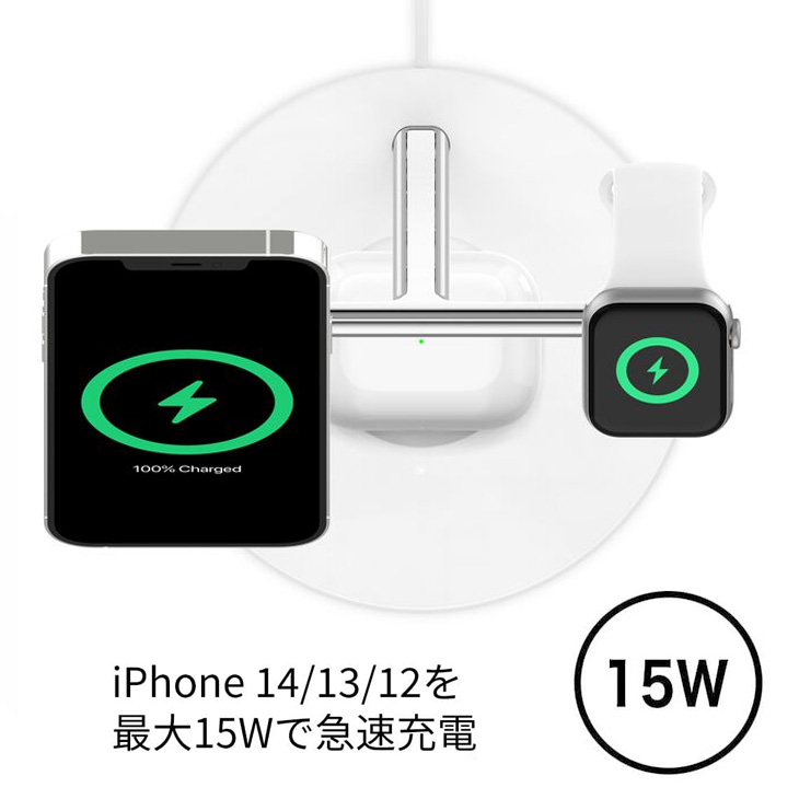 【新品】Belkin WIZ009dqWH MagSafe充電器 最大15W高速充電 ワイヤレス充電器 iPhone15 / 14 / 13 / 12 / AppleWatchやAirPodsにも対応 ホワイト 送料無料