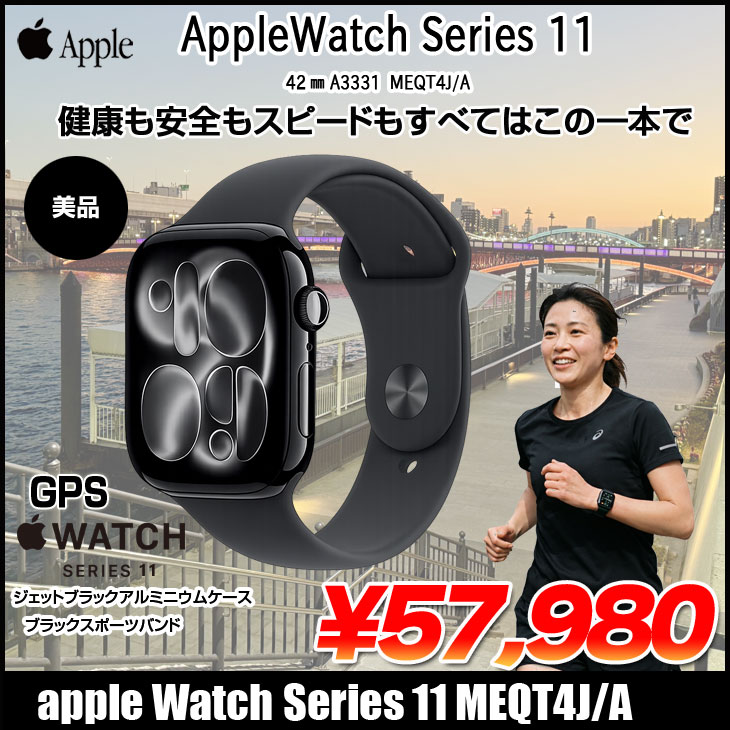 【中古】Apple Watch 11 (GPSモデル)42mm MEQT4J/A A3331 [ジェットブラックアルミニウムケース スポーツバンド42mm(S/M)] アップルウォッチ11:美品