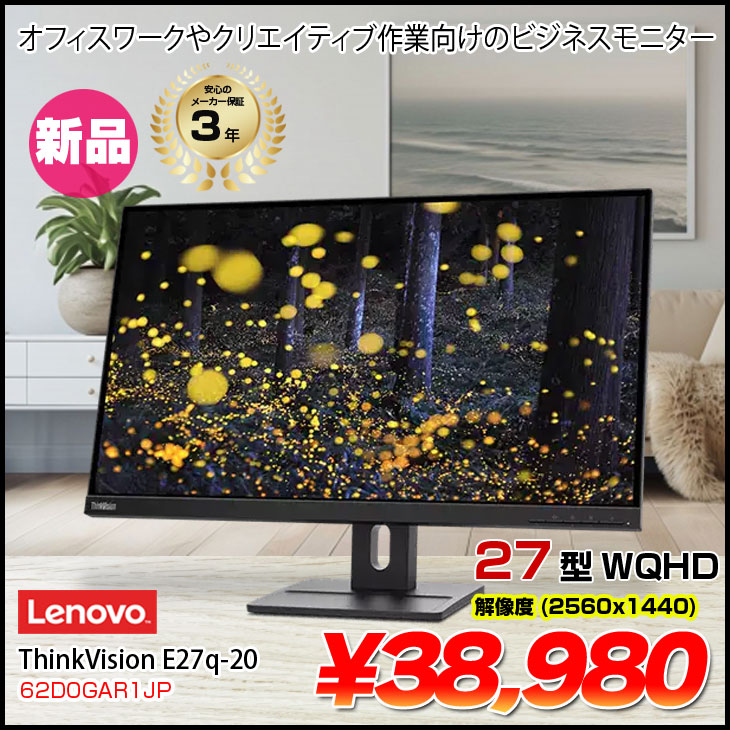 【新品】Lenovo 27インチ 液晶モニター ThinkVision E27q-20 高画質 2560×1440 HDMI/DISPLAYPORT メーカー保証3年