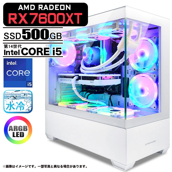 ゲーミングPC GP-V3 ホワイト Radeon RX7600X 第14世代 Intel Corei5 14400F Win11 SSD500GB メモリ16GB CPU水冷ファン PASOUL 一年保証:新品