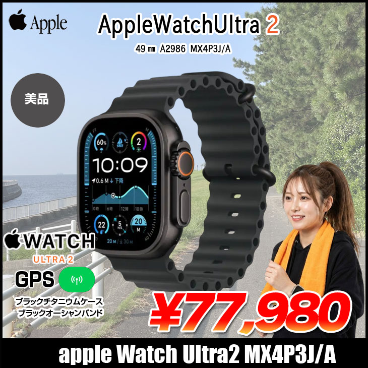【中古 SIMフリー】アップルウォッチ Apple Watch Ultra 2(GPS-セルラー)49mm MX4P3J/A A2986 [ブラックチタニウムケース ブラックオーシャンバンド] :美品