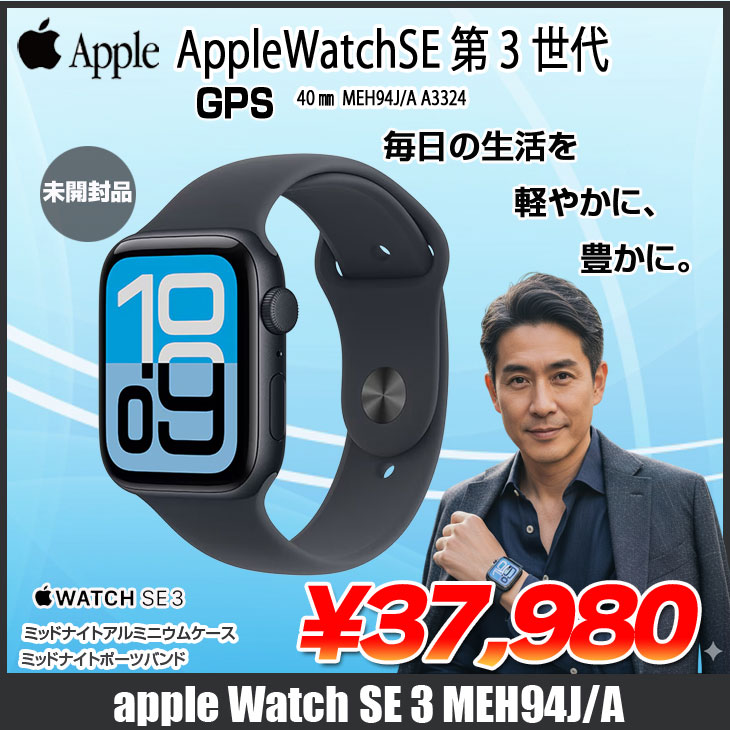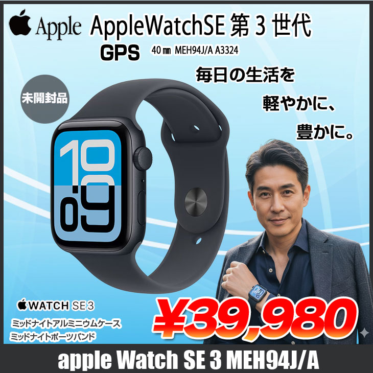 【未開封品】Apple Watch SE3 (GPSモデル)40mm MEH94J/A A3324 [ミッドナイトアルミニウムケース ミッドナイトスポーツバンド40mm S/M)]ミッドナイト