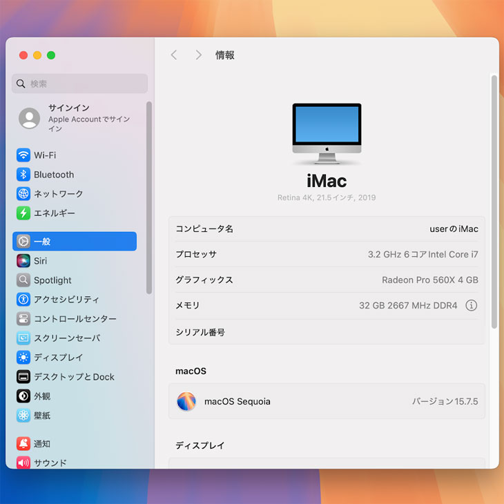 【中古パソコン】Apple iMac 21.5inch MRT42J/A A2116 4K 2019 一体型 選べるOS [Core i7 8700 3.2GHz メモリ32GB SSD256GB 無線 BT カメラ 21.5インチ ] :良品