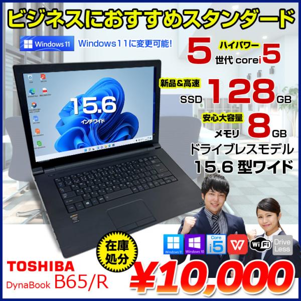 【中古パソコン】東芝 dynabook B65/R 中古 ノート Office 選べる Win11 or Win10 第5世代 [Core i5 5200U メモリ8GB SSD128GB 15.6型] :良品