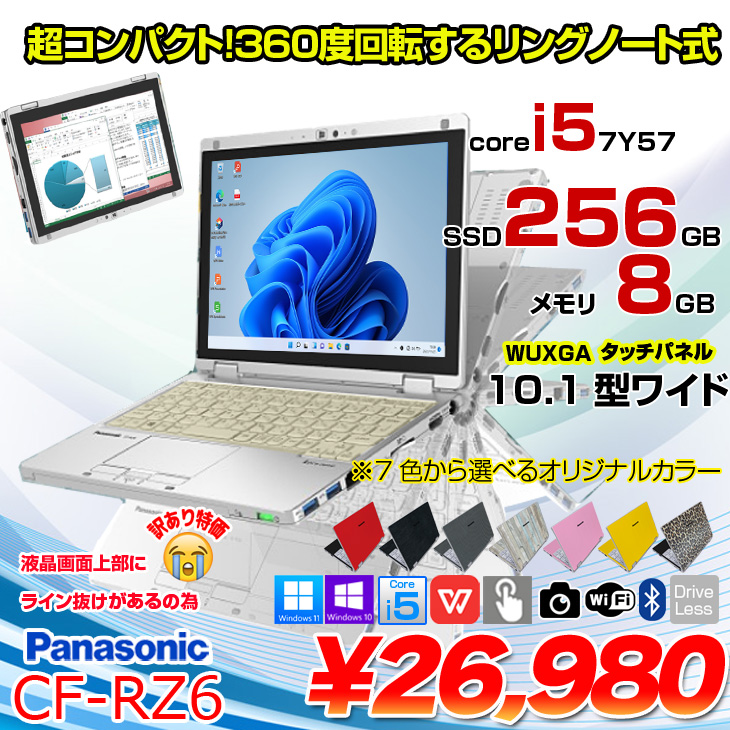 【中古パソコン】Panasonic CF-RZ6 中古 レッツノート 選べるカラー Office Win11 or Win10 2in1[Corei5-7Y57 メモリ8GB SSD256GB カメラ 10.1型]:訳あり