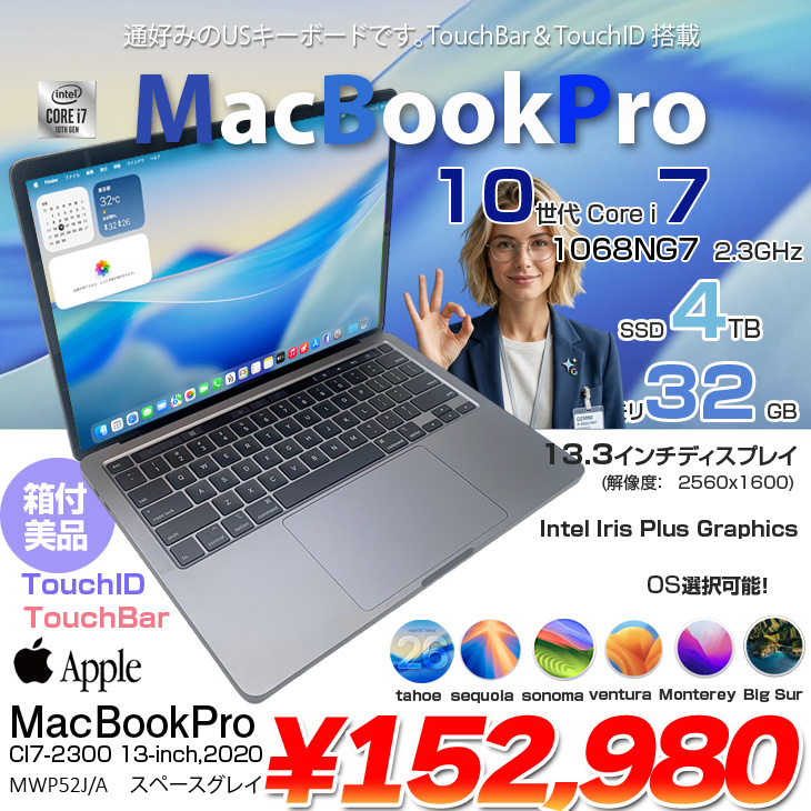 Apple MacBook Pro 13.3inch MWP52J/A A2251 2020 USキー 選べるOS TouchBar TouchID [core i7 1068NG7 32GB 4TB カメラ 13.3 Space Gray 純箱] :美品