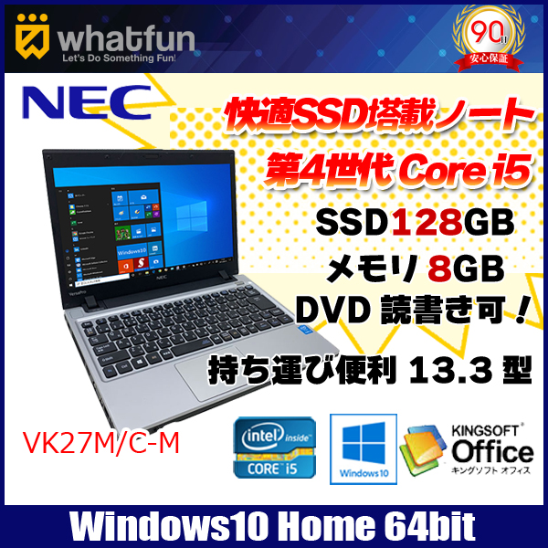 【中古パソコン】NEC VersaPro UltraLite VK27M/C-M 中古 Office Win10 第4世代 [core i5 4310M 2.7GHz 8GB SSD128GB 無線 13.3型 マルチ ]:アウトレット