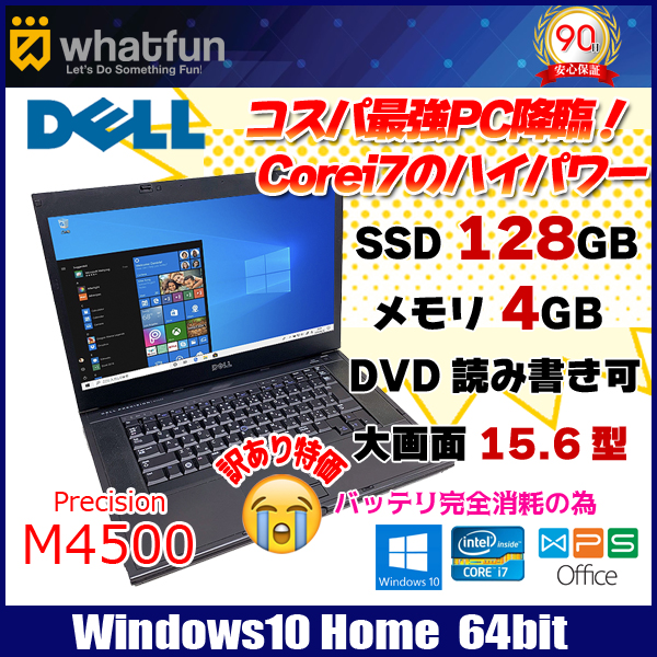 【中古パソコン】DELL Precision M4500 Office Win10 Corei7のハイパワー [Core i7 Q740 1.73GHz 4GB SSD128GB マルチ 15.6型 SD eSATA ]訳あり