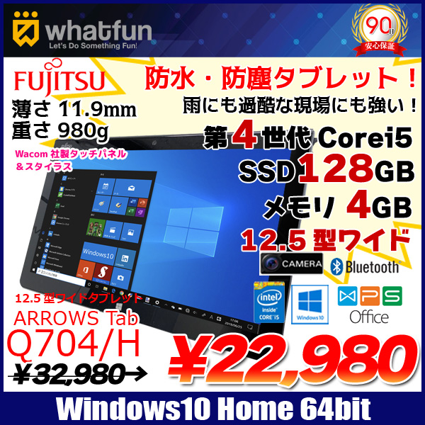 【中古パソコン】富士通 ARROWS Tab Q704/H 中古 防水 タブレット Win10 [corei5 4300U 1.9GHz 4GB SSD128GB 無線 BT カメラ 12.5型 ペン付] :アウトレット