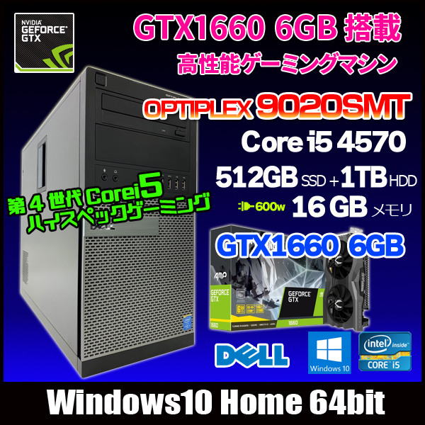 【中古パソコン】DELL 9020 ゲーミングパソコン GTX1660搭載 Windows10 [Corei5 4570 3.2GHz