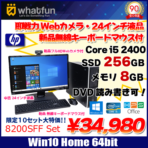 HP 8200 SFF セット 中古パソコン フルHDカメラ 24型液晶 無線キー・マウス Win10 Office [corei5 2400 3.1GHz 8GB SSD256GB マルチ]:良品