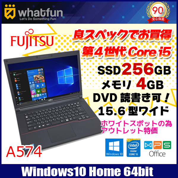 【中古パソコン】富士通 A574 中古 ノートパソコン Office Win10 Home SSD塔載 テンキー 第4世代 [corei5 4210M 2.6GHz 4GB SSD256GB マルチ 15.6型 A4]:アウトレット