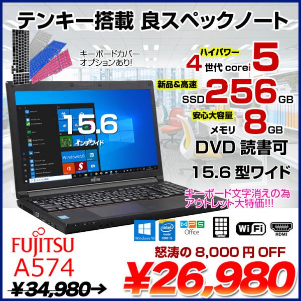 【中古パソコン】富士通 LIFEBOOK A574 中古 ノート Office Win10 第4世代[Core i5 4210M メモリ8GB SSD256GB マルチ 無線 テンキー 15.6型] :アウトレット