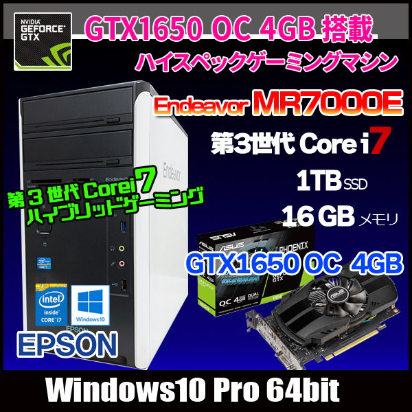 【中古パソコン】EPSON Endeavor MR7000E ハイスペックゲーミング eスポーツ GTX1650OC 4GB搭載 Win10 [core i7 3770 3.4GHz 16GB SSD1TB マルチ]:アウトレット