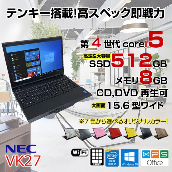 【中古パソコン】NEC VK27 中古 ノート 選べるカラー Office Win10 SSD塔載 第4世代 テンキー [Corei5 4310M 2.7GHz 8GB SSD512GB ROM 無線 15.6型 ] :良品