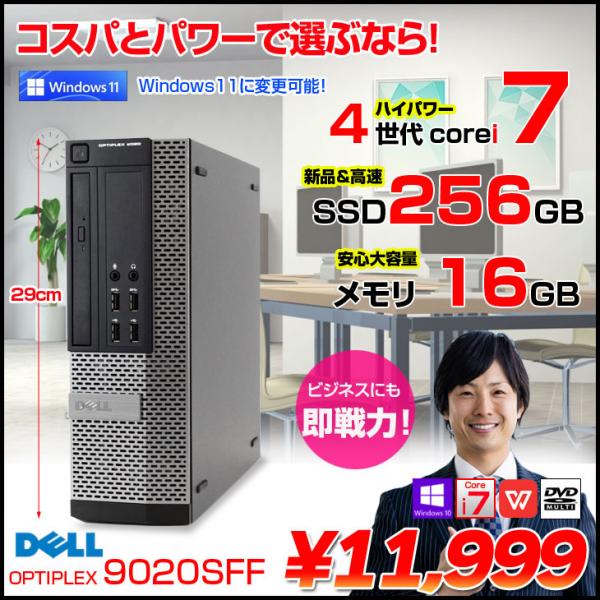 【中古パソコン 1点限り】DELL 9020 SFF コスパ最高デスク在庫一掃!Office Win10 第4世代 [corei7 4770 3.4GHz メモリ16G SSD256GB マルチ ]:アウトレット